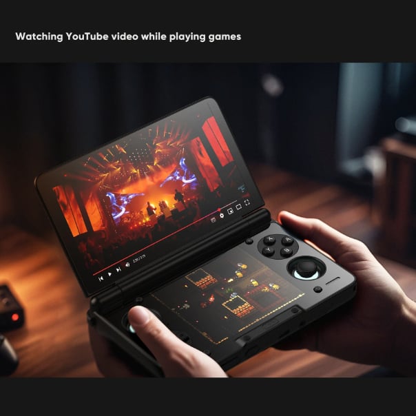 A flagship dual-screen clamshell handheld with immersive AMOLED displays and a sleek, glass-front design, delivering powerful Android performance in a refined, clamshell form factor.